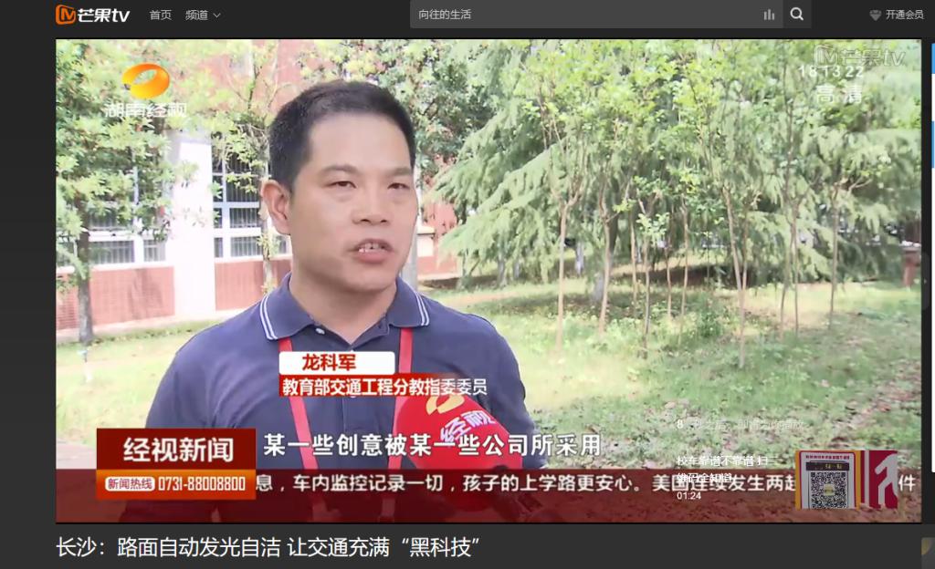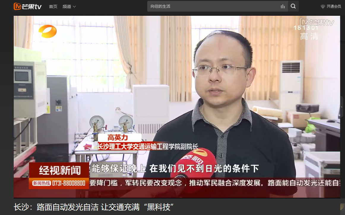 湖南经视5月19日经视联播对我校举办的第十三届全国大学生交通科技大赛赛事进行了报道。其中,高英力教授指导,曹韩硕、李欢、袁江、郑策策、肖蕾参与研发的《“自发光—可自洁”智能仿生水泥路面》,受到湖南经视的特别关注进行了跟踪报道。项目从发光标志牌受到启发,运用长余辉发光材料使路面具备自发光的性能,使路面自己发光,对夜间行驶的驾驶员起到警示作用,同时智能仿生水泥运用超疏水材料使路面具备自洁性能和防覆冰效果,有较强的应用价值,最终项目获得第十三届全国大学生交通科技大赛二等奖。