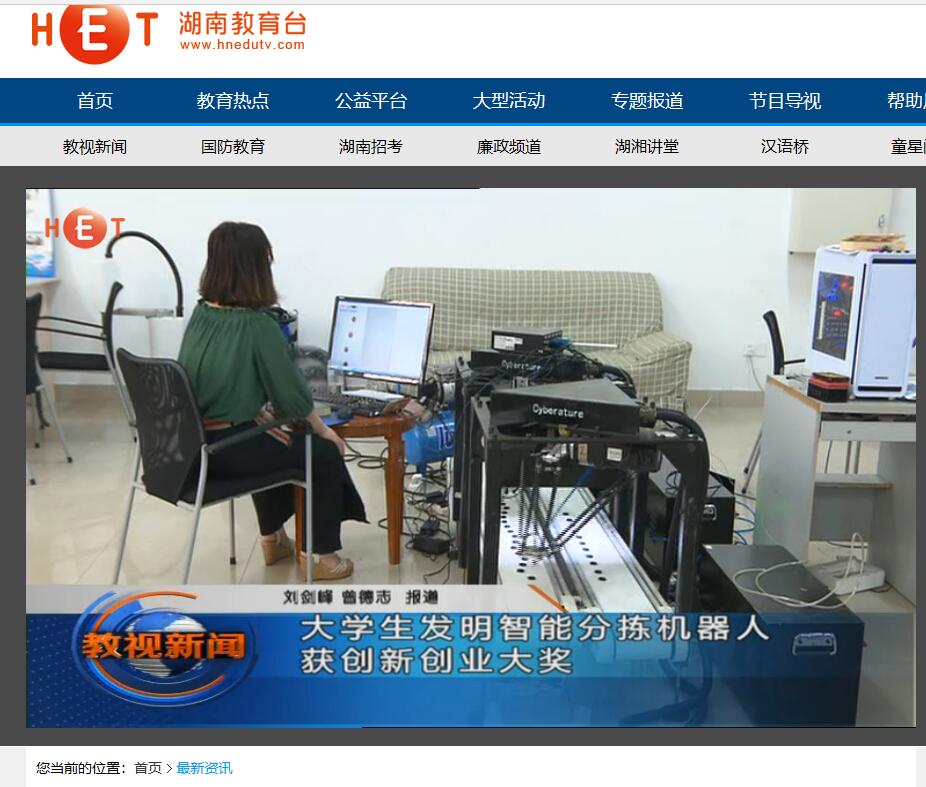 湖南教育电视台:大学生发明智能分拣机器人获创新创业大奖