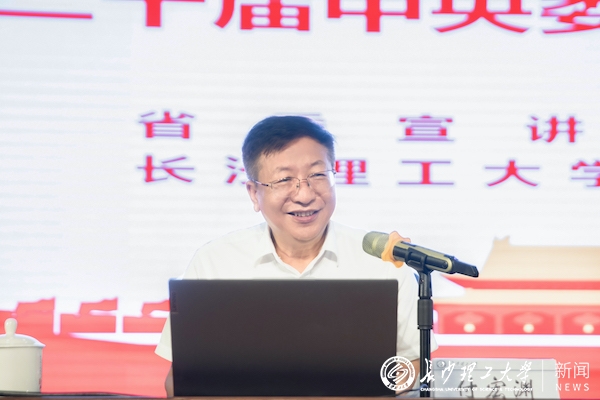 付宏渊从深刻认识和把握这次全会精神,深入学习领会习近平总书记在党的二十届三中全会上的重要讲话精神,党的二十届三中全会对教育、科技、人才提出了新要求、新任务,进一步全面深化改革是建设高等教育强省的必由之路,进一步全面深化改革、奋力书就高等教育高质量发展的“长理新篇章”等五个方面,对党的二十届三中全会精神进行了深入系统解读。