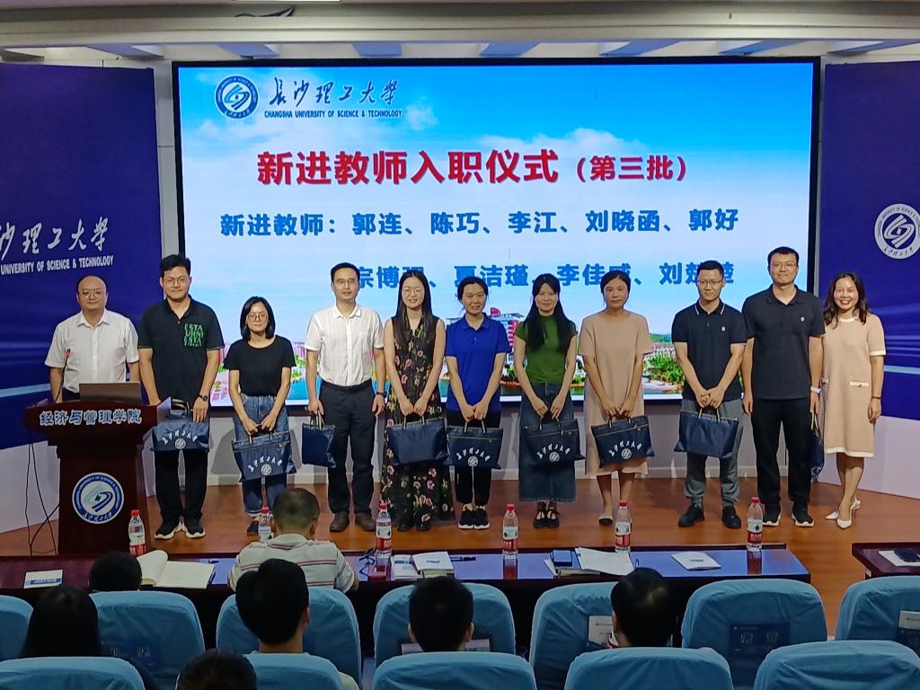 会前,学院还举办了本年度第3批新进教师入职仪式。9名新入职教师依次作了自我介绍,表达了初入学院的喜悦和面对未来的畅想,期待为人才培养、专业发展、学院进步贡献自己的力量。丁丹和彭新宇为他们赠送了入职礼包,并代表学院对他们表示热烈欢迎。