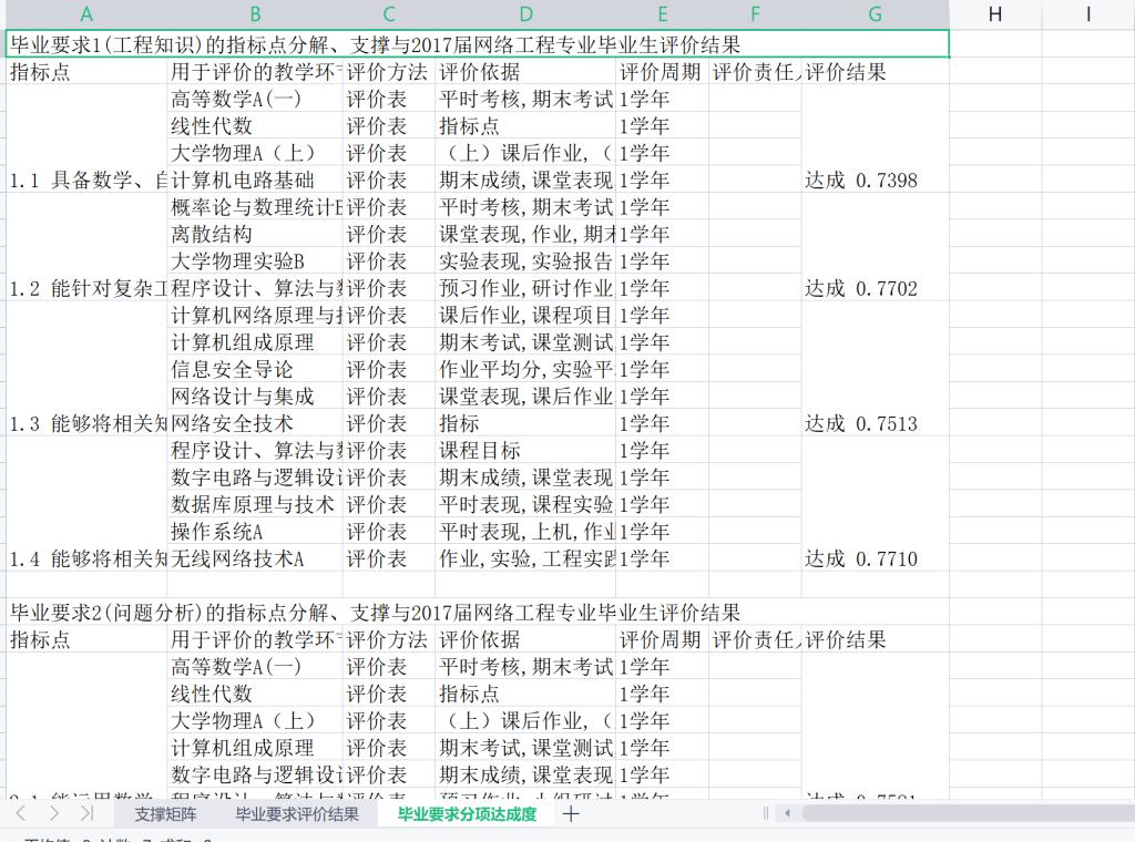 学生能力达成评价是当前高校工程教育专业认证工作的重要环节。然而,该项工作需要处理大量庞杂的基础数据,人工计算出错率高且效率低。同时,围绕学生毕业能力达成最关键问题是追踪学生学业状态,预警能力未达成学生,帮扶学生达成。